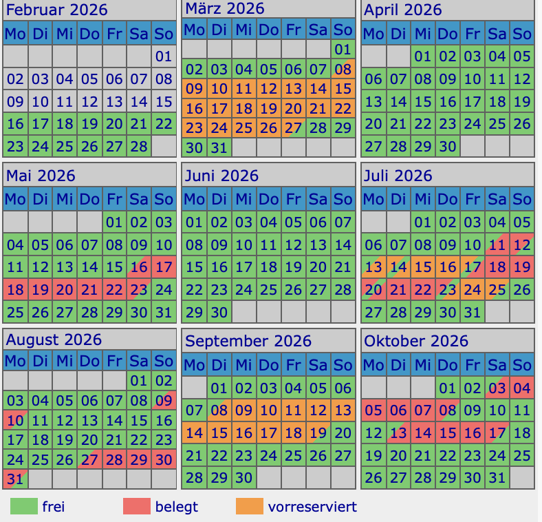 Verfügbarkeit prüfenHier siehst du die aktuelle Verfügbarkeit. Buchungsanfragen gern per Formular/WhatsApp. Anfrage Ferienhaus Bergblick oder Seeblick Name E-Mail-Adresse Ich interessiere mich für: Ich interessiere mich für: Ferienhaus Bergblick Ferienhaus Seeblick Beide Ferienhäuser Nachricht 2 + 12 = Anfrage absenden